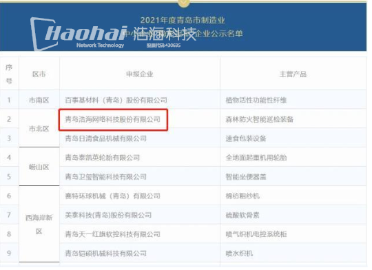 多年來,青島浩海網絡科技股份有限公司黨支部以黨建為引領,把黨建工作作為企業提質增效的重要抓手,用高質量黨建助推企業高質量發展。智慧時代,作為數字創新型企業,浩海科技堅持以森林防火和城市安全物聯網產品提供商、AIOT智慧感知物聯網解決方案服務商的戰略定位,聚焦智能防火、智慧應急、智慧城市、智慧社區四大核心業務,以智慧技術賦能千行百業,被評為山東省大數據企業50強、山東省企業技術中心、2021年度青島“隱形冠軍”, 入選2018年國家重點推廣林業科技成果100項,這是對浩??萍妓〉玫膭撔鲁晒目隙?。
